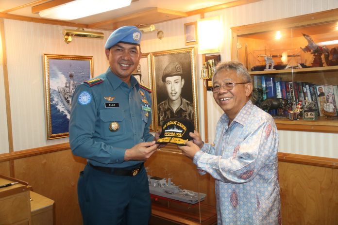 Oman – Duta Besar Luar Biasa Berkuasa Penuh Republik Indonesia untuk Kesultanan Oman, H.E. Musthofa Taufik Abdulatif beserta rombongan mengunjungi prajurit TNI yang tergabung dalam Satuan Tugas Maritime Task Force (Satgas MTF) TNI Konga XXVIII-J/Unifil (United Nations Interim Force in Lebanon) 2017 di KRI Usman Harun-359 yang sedang sandar di pelabuhan Salalah, Oman, Senin (11/0/2017), setelah empat hari berlayar melewati Laut Arab dari Kochin, India.