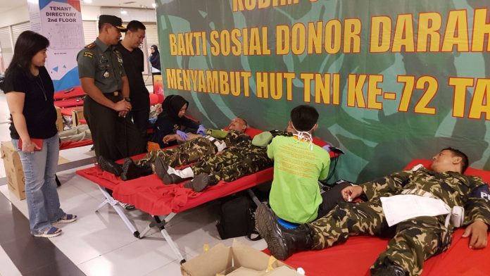 JAKARTA BARAT – Dalam rangkaian menyambut HUT TNI Ke-72 tahun 2017, Lindeteves Trade Center (LTC) Glodok bekerjasama dengan Komando Distrik Militer 0503/JB, mengadakan donor darah dan pembagian sembako di LTC Glodok, pada Sabtu (16/09/2017), yang diikuti sekitar 2000 orang pendonor.