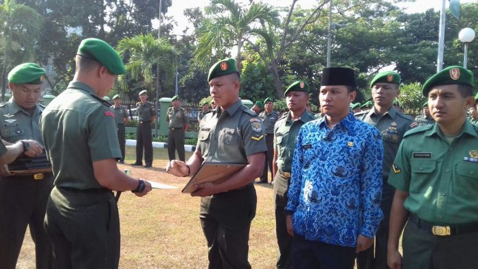 Kemayoran – Dandim 0501/Jakarta Pusat BS, Letkol Inf Edwin Adrian Sumantha, S.H memberikan reward kepada 10 anggota Kodim 0501/JP BS yang berprestasi, bertempat di Lapangan Makodim 0501/Jakarta Pusat BS Jalan Selaparang Blok B 11 Kav 1, Kelurahan Gunung Sahari Selatan, Kecamatan Kemayoran, Kota Jakarta Pusat, Senin (18/09/2017).