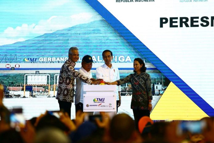 Jawa Tengah – Presiden Republik Indonesia Joko Widodo didampingi Gubernur Jawa Tengah Ganjar Pranowo, Menteri PUPR Basuki Hadimulyono dan Menteri BUMN Rini Soemarno, meresmikan Jalan Tol Semarang – Solo Ruas Bawen – Salatiga, sepanjang 17,6 Km, pada Senin (25/09/2017) sore.