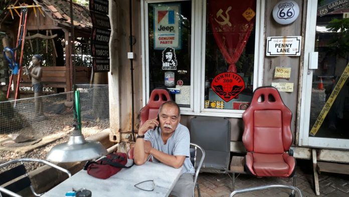 Cilandak – Babinsa Koramil 07/Cilandak Dim 0504/JS menurunkan dan menyita bendera palu arit logo PKI dari Bengkel 66 Yesterday Cafe, di jalan Antasari, kelurahan Cipete Selatan, kecamatan Cilandak, Jakarta Selatan, Kamis (28/09/2017) sore.