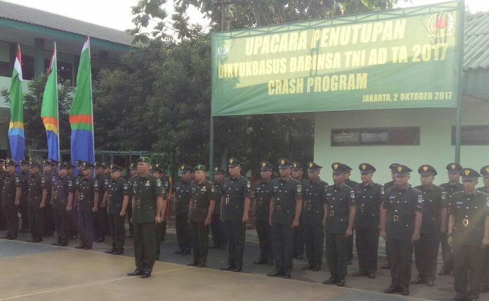 Condet – Danrindam Jaya Kolonel Inf Anton Yuliantoro secara resmi menutup Pendidikan Pembentukan Bintara Khusus (Diktukbasus) Babinsa (Bintara Pembina Desa), yang diikuti oleh 98 mantan prajurit siswa resmi menyandang pangkat Sersan Dua, di lapangan Wira Madya Rindam Jaya, Condet Jakarta Timur, Senin (02/10/2017).