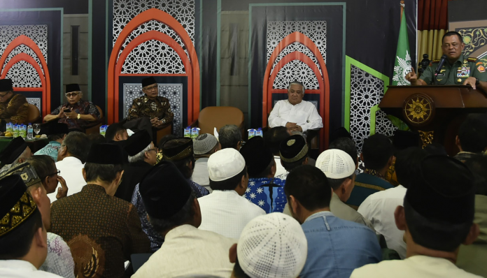 Menteng – Panglima TNI Jenderal TNI Gatot Nurmantyo tampil sebagai pembicara dalam pengajian bulanan yang digelar Pimpinan Pusat (PP) Muhammadiyah, dengan tema “Islam, TNI dan Kedaulatan Bangsa”, di Aula KH Ahmad Dahlan, Gedung Pusat Dakwah Muhammadiyah, Menteng Raya No. 62, Jakarta Pusat, Jumat (06/10/2017) malam.