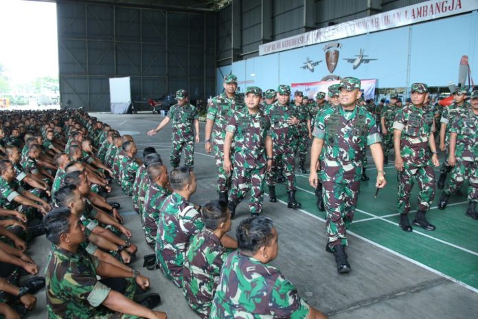 Malang – Panglima TNI Jenderal TNI Gatot Nurmantyo melakukan kunjungan dan memberikan pengarahan kepada 3.700 prajurit TNI, bertempat di Hanggar Skadron 32 Lanud Abdulrahman Saleh, Malang, Jawa Timur, pada Senin (16/10/2017).