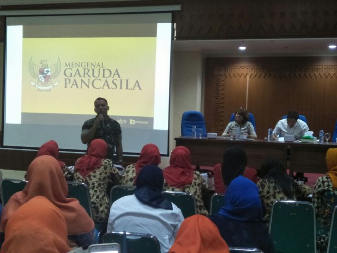 Jakarta – Danramil 07/ Kemayoran Dim 0501/Jakarta Pusat Mayor Inf Harry Ismail memberikan materi penyuluhan tentang Implementasi Pancasila dalam kehidupan sehari-hari kepada anggota PKK Kecamatan Se-Walikota Jakarta Pusat, dipimpin Asisten Pemerintahan Jakarta Pusat Sujanto Budiroso, S. Sos, M. Si di Kantor Walikota Jakarta Pusat, Rabu (25/10/2017).