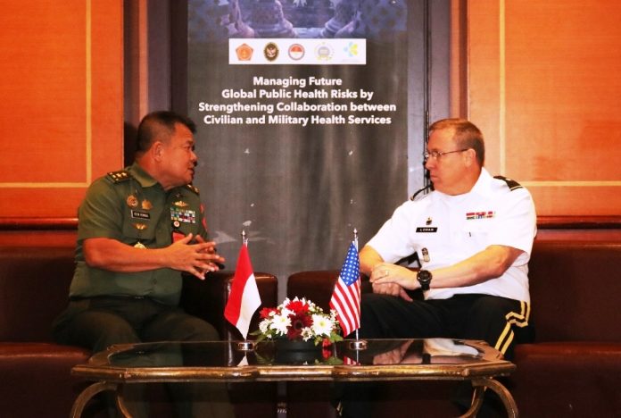 Kapuskes TNI Mayjen TNI dr Ben Yura Rimba, MARS melaksanakan Bilateral Meeting dengan Adjutant General US Hawaii National Guard Brigadier General Logan, bertempat di Hotel Borobudur Jakarta Pusat, Rabu (25/10/2017).