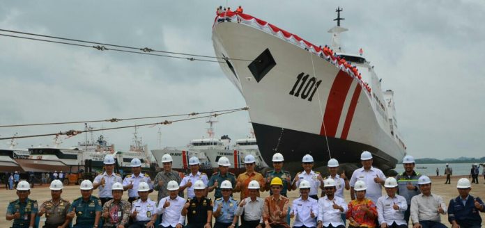 Batam – Badan Keamanan Laut Republik Indonesia (Bakamla RI) meluncurkan Kapal Negara (KN) Tanjung Datu-1101, di Dermaga PT Palindo Marine Shipyard, Batam, Provinsi Kepulauan Riau, Senin (20/11/2017).