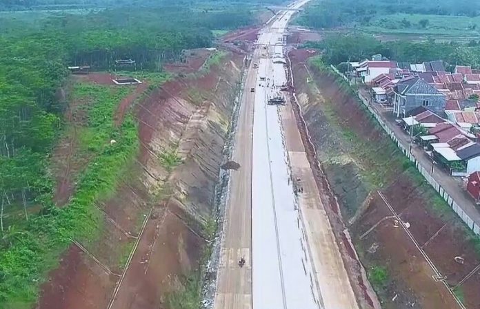 Percepatan pembangunan jalan tol dengan total panjang 75 Km ini pun dilakukan dari aspek realisasi pembebasan lahan untuk gabungan seluruh seksi sudah mencapai 98,17%.