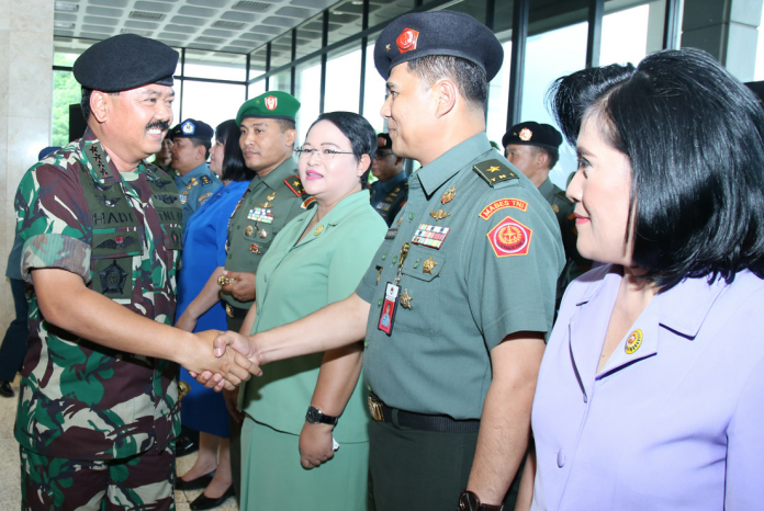 Cilangkap – Panglima TNI Marsekal TNI Hadi Tjahjanto, S.I.P., saat memimpin Laporan Korps Kenaikan Pangkat 66 Perwira Tinggi TNI, bertempat di Ruang Hening, Mabes TNI, Cilangkap, Jakarta Timur, Selasa (12/12/2017) kemarin.