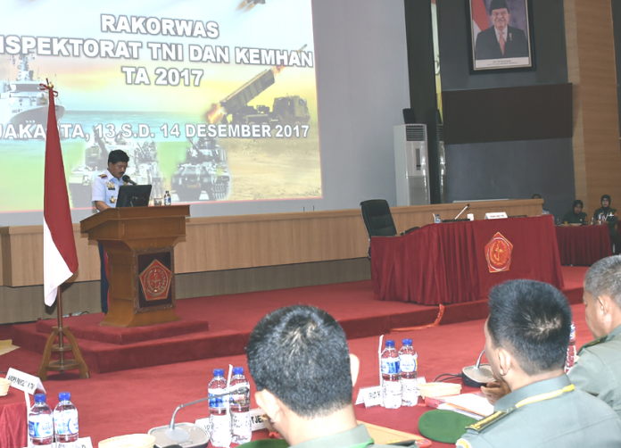 Rakorwas Inspektorat TNI dan Kemhan Tahun 2017 dengan tema “Penguatan Peran APIP Dalam Pengawasan Dan Pemeriksaan Dengan Pola Pre, Current dan Post Audit Guna Meniadakan Penyalahgunaan Kewenangan Di Lingkungan TNI/Kemhan Dalam Rangka Meningkatkan Kesiapan Operasi Dan Kesejahteraan Prajurit TNI,” diikuti 124 peserta dan berlangsung selama dua hari (13 – 14 Desember 2017). (ferry)