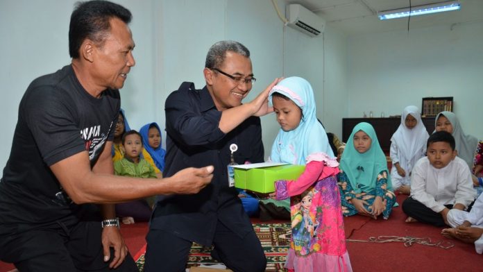 Puncak acara yakni penyerahan santunan oleh Pengurus Mushola Kantor Bakamla RI Wakhid Ma’mun kepada anak-anak yatim. Sebanyak 25 orang anak yatim tersebut sebagian datang didampingi orang tua masing-masing, mengingat masih ada yang berusia balita. (ferry)