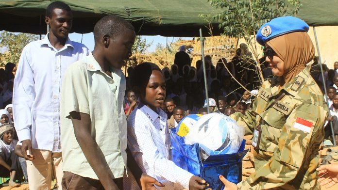 Inventori.co.id – Pasukan Garuda yang tergabung dalam Satgas Yonkomposit TNI Konga XXXV-C/Unamid (United Nations Mission In Darfur) di bawah pimpinan Letkol Inf Syamsul Alam, S.E, selain bertugas menjaga keamanan dan perdamaian dalam naungan PBB di wilayah Sektor Barat Darfur juga melaksanakan kegiatan Cimic (Civil Military Coordination) dalam bentuk sosial.