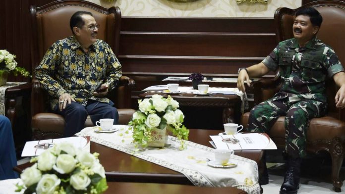 Inventori.co.id – Panglima TNI Marsekal TNI Hadi Tjahjanto, S.I.P., didampingi Aster Panglima TNI Mayjen TNI Kustanto Widiatmoko, Kapuspen TNI Mayjen TNI M.S. Fadhilah dan Pa Sahli TK III Bid. Komsos Brigjen TNI Suhardjanto menerima audiensi Executive Steering Commitee Internasional Veteran Cycling Indonesia (IVCA) Letjen TNI (Purn) R. Soeyono beserta rombongan, bertempat di Ruang Tamu Panglima TNI Jl. Merdeka Barat, Jakarta Pusat, Senin (15/01/2018).