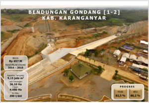 Jakarta, inventori.co.id – Pembangunan Bendungan Gondang di Kabupaten Karanganyar, Jawa Tengah yang tengah dikerjakan Kementerian Pekerjaan Umum dan Perumahan Rakyat (PUPR), saat ini progresnya telah mencapai 82,55%, dengan kapasitas tampung 9,15 juta m3 ini ditargetkan rampung pada akhir tahun 2018.
