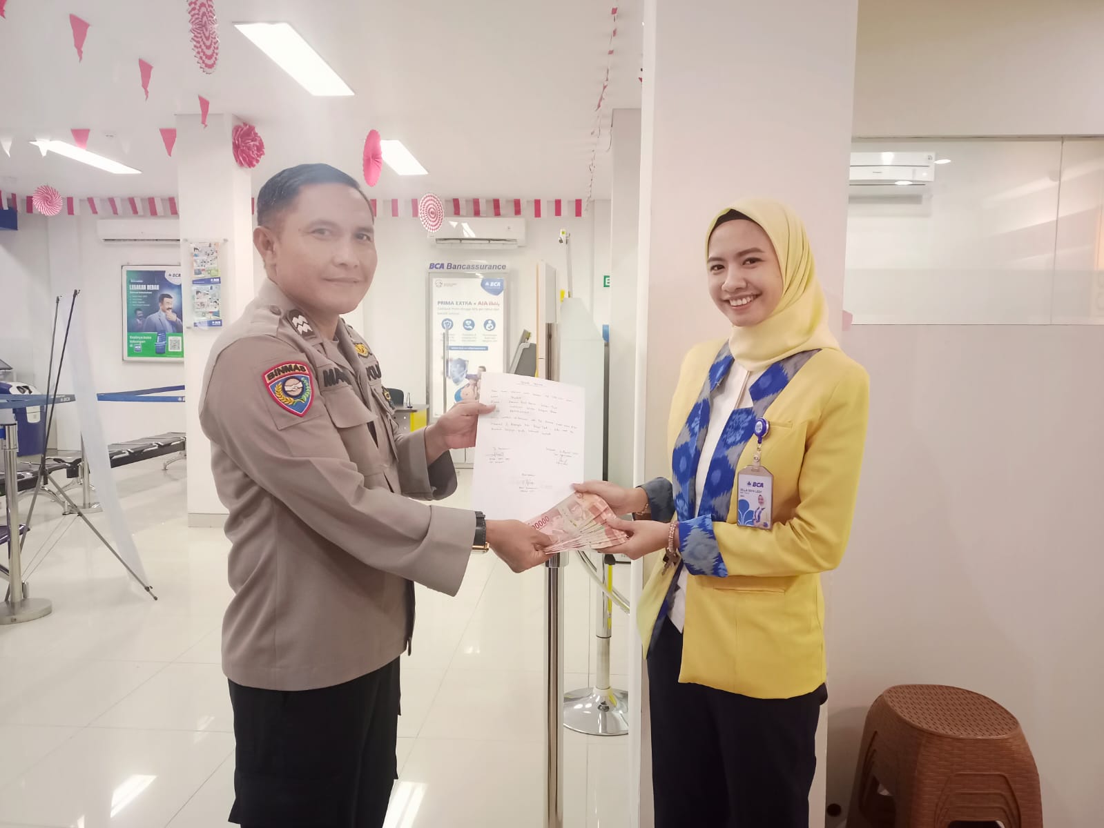 Akhirnya setelah melalui proses uang diserahkan terlebih dahulu kepada pihak bank, selanjutnya pihak bank menyerahkan kembali kepada Ibu Heni.