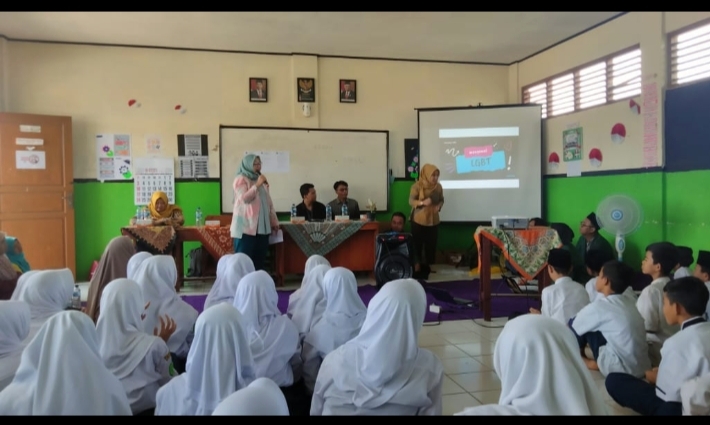 Rancabungur, INVENTORI.CO.ID – Demi menumbuhkan kesehatan mental dan perilaku agar orientasi seks tak menyimpang, kelompok 10 kuliah kerja nyata (KKN) Universitas Nadhatul Ulama Indonesia (Unusia) menggelar ‘sharing season” di MTs. Annida Bina Insani di desa Rancabungur, Kabupaten Bogor, Jumat (15/9/2023). Kegiatan ini berisi sosialisasi pengenalan dan bahaya LGBTÂ (lesbian, gay, biseksual, dan transgender).