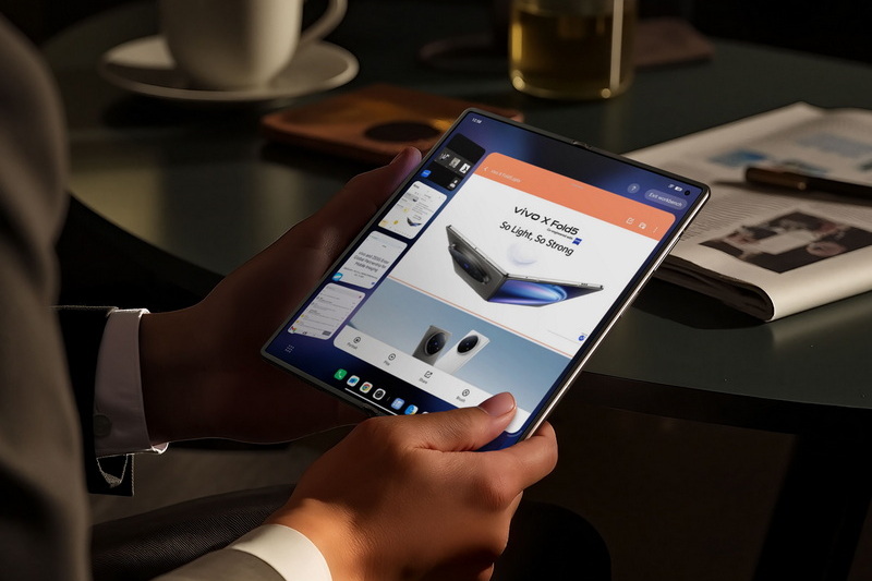 Dengan bobot ringan 217 gram dan profil tipis 4,3 mm saat dilipat, Vivo X Fold5 dirancang untuk mobilitas. Perangkat ini tidak hanya mengandalkan desain, tetapi juga sejumlah fitur pintar untuk mendukung produktivitas.