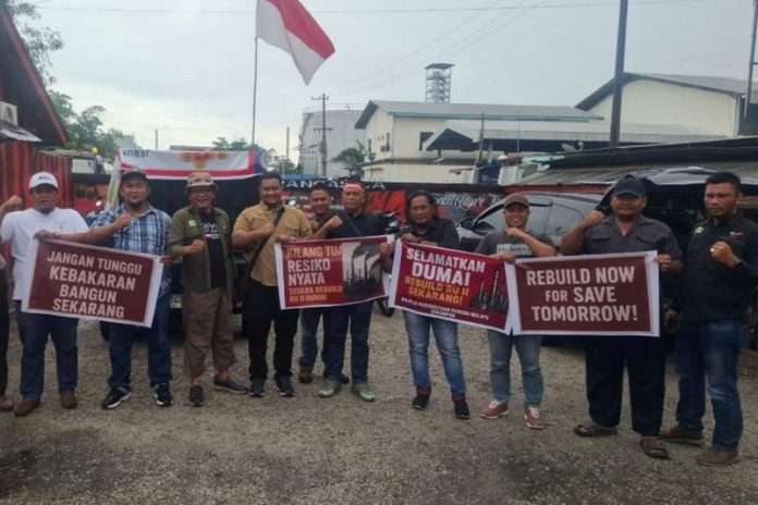 DUMAI, inventori.co.id – Majelis Persekutuan Pemuda Melayu Serumpun (MPMS) bersama beberapa elemen masyarakat menggelar aksi damai di depan PT Kilang Pertamina Internasional Refinery Unit (RU) II Dumai pada Senin (20/10/2025) pagi, pukul 09.00-11.00 WIB.